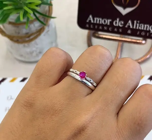 Anel Solitário em Prata Belly Colors Pink