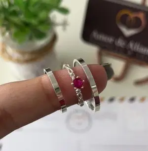 • Para limpar suas alianças de Prata 950, você pode utilizar uma flanela mágica e o produto limpa-prata Monzi;